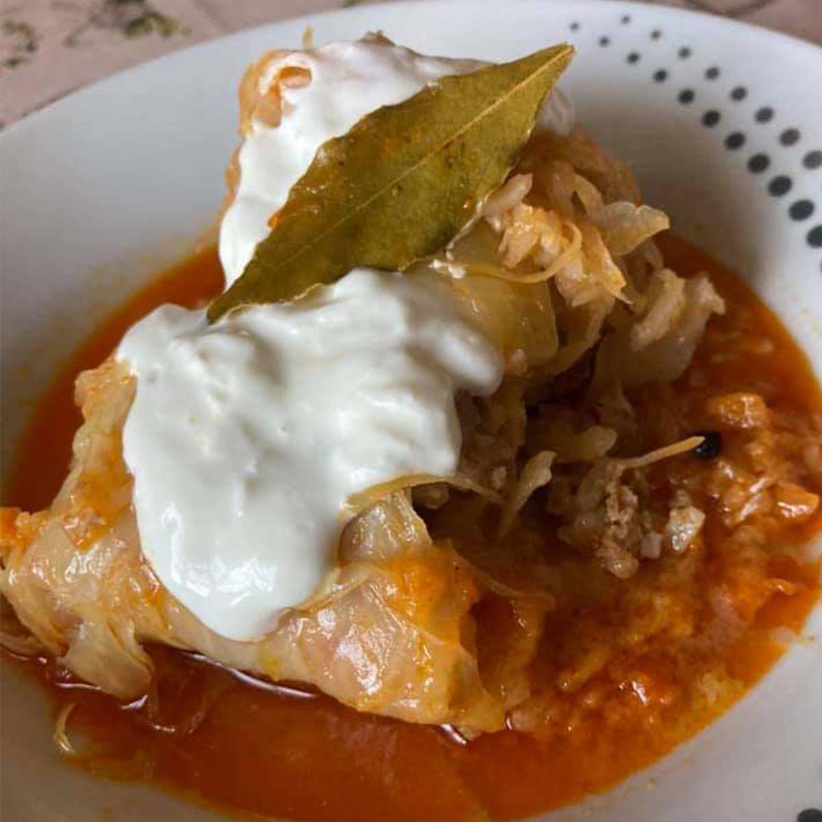 Egy nagyobb fejes káposztának a leveleit lefejtjük, ezekbe göngyöljük majd a tölteléket, a megmaradt káposztát pedig legyaluljuk. Egy lábas aljára halmozzuk a káposztánkat egy- két kanál sűrített paradicsom kíséretében, pár darab babérlevéllel, néhány szem egész borssal együtt. A tökéletes ízvilág érdekében a megmosott, füstölt bordaszéleket is rátesszük. Ennek a tetejére kerülnek a töltelékek, majd az egészet felöntjük annyi vízzel, ami pont ellepi ez ételünket. Ugyan elhagyható, de le is takarhatjuk a lábas tetejét káposztalevéllel. Közepes lángon kb. 70-80perc alatt megfő a töltött káposztánk, ha kész, akkor készítünk rá egy vékony rántást. 1 ek olajon pirítsunk 1 ek lisztet, amihez a tűzhelyről levéve 1 tk pirospaprikát teszünk, és felöntjük kevés langyos vízzel. Az így kapott rántással még összeforraljuk az ételt, és kész is vagyunk. Mi tejföllel tálaljuk és fogyasztjuk.
